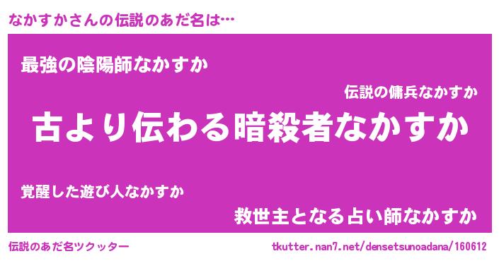 | 女子向けラノベタイトル風あだ名 | 『闇のなかすか』『なかすかの契約王妃』 |