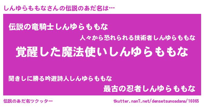 | 男性向けラノベタイトル風あだ名 | 『しんゆらももなの嫁は女の子じゃないと思った?』 |