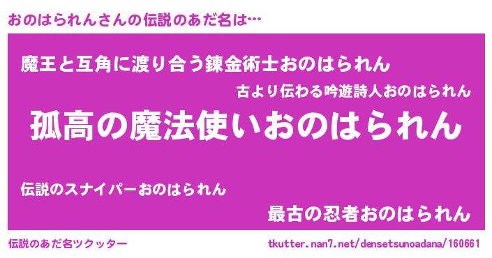 | 意味不明あだ名 | 『自称おのはられん』 |