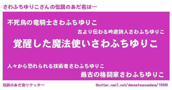 | 胡散臭い通販商品みたいなあだ名 | 『全米が絶賛したサプリメント…その名も「さわふちゆりこ」』 |
