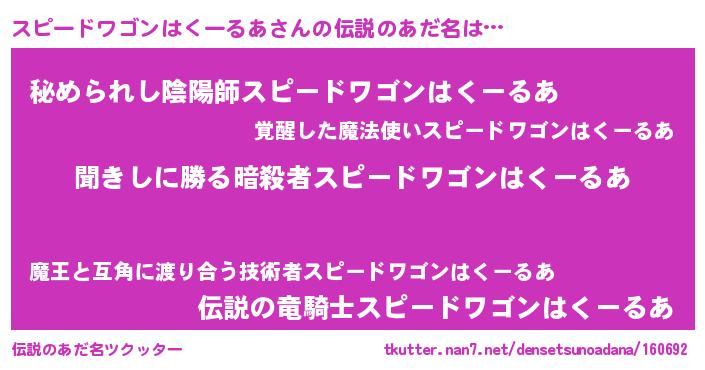 | ヒーロー風カッコイイあだ名 | 『ネオスピードワゴンハクールア』 |
