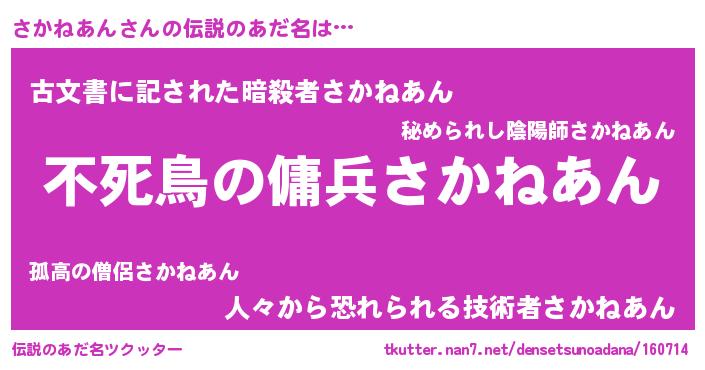 | 意味不明あだ名 | 『ペロリンさかねあん』『自称さかねあん』 |