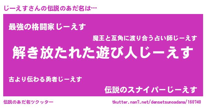 | 意味不明あだ名 | 『とにかく怪しいじーえす』 |