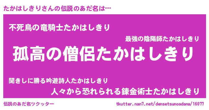 | ヒーロー風カッコイイあだ名 | 『仮面タカダー』『幻影騎士タカ』 |