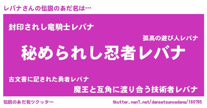 | 意味不明あだ名 | 『レバナフォーエバー』『自称レバナ』 |