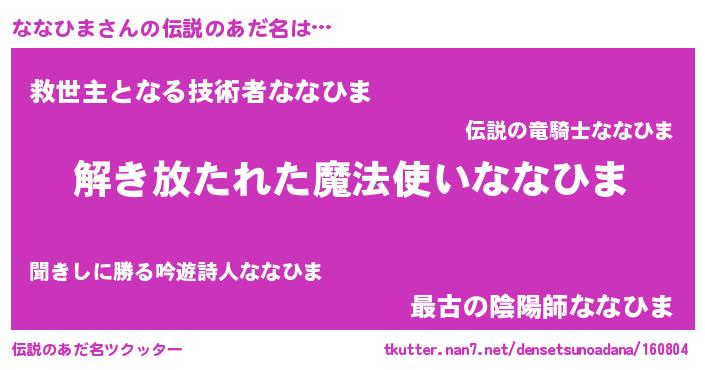| ポケモン風あだ名 | 『ナナキング』『ヒナナヒマ』 |