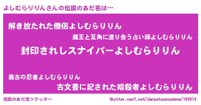 | 意味不明あだ名 | 『自称よしむらりりん』 |