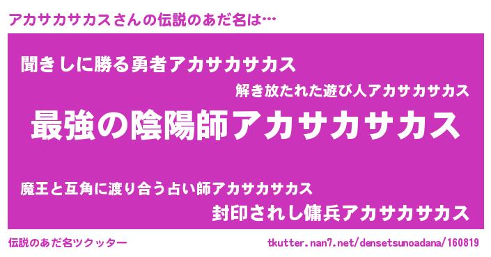 | 意味不明あだ名 | 『アカサカサカスフォーエバー』 |