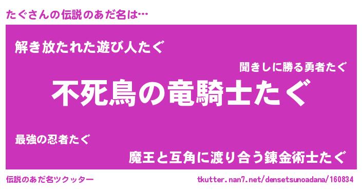 | 男性向けラノベタイトル風あだ名 | 『転生したらたぐだった件』『たぐの憂鬱』 |