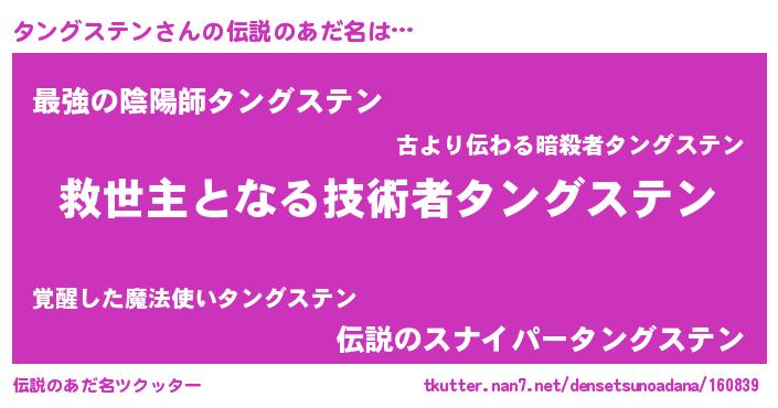 | 男性向けラノベタイトル風あだ名 | 『ノーゲーム・ノータングステン』 |