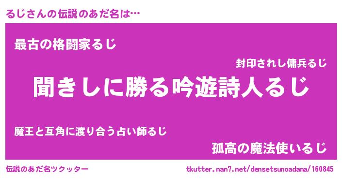 | 女子向けラノベタイトル風あだ名 | 『異世界で失敗しない100のるじ』 |