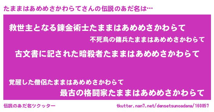 | ヘコむあだ名 | 『たままはあめめさかわらて(爆)』 |
