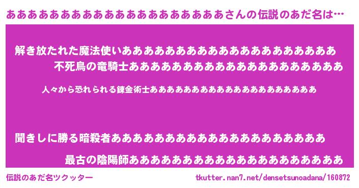 | ヒーロー風カッコイイあだ名 | 『友情の使者ああああああああああああああああああああ』 |