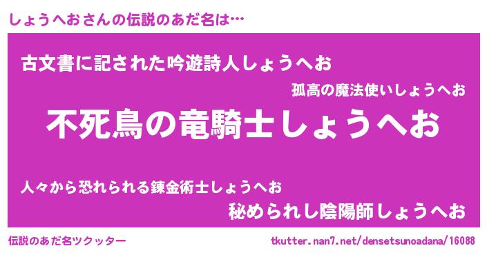 | 男性向けラノベタイトル風あだ名 | 『ショウヘオアートオンライン』 |
