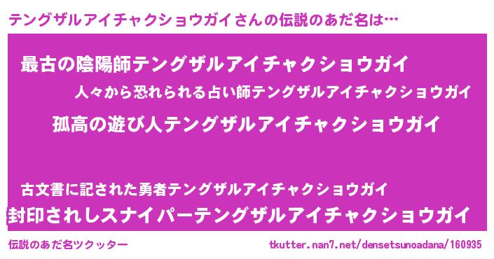 | 胡散臭い通販商品みたいなあだ名 | 『信頼と実績のペンダント…その名も「テングザルアイチャクショウガイ」』 |