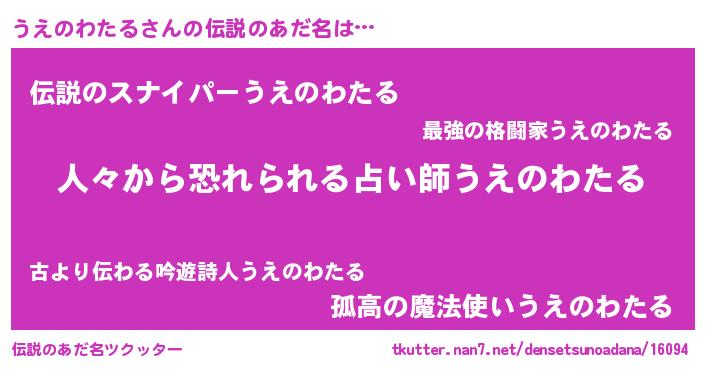 | 意味不明あだ名 | 『自称うえのわたる』 |