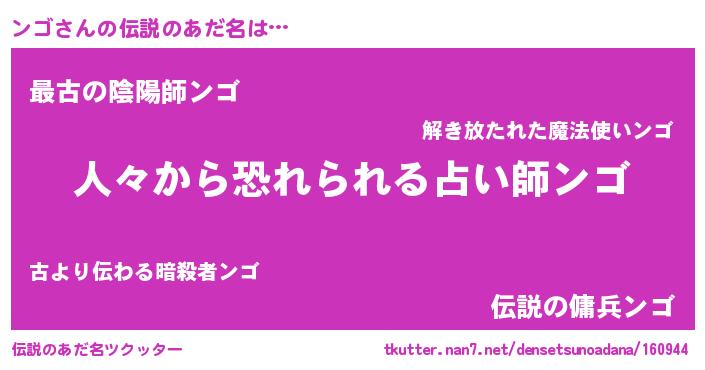 | 男性向けラノベタイトル風あだ名 | 『魔法科高校のンゴ』『ンゴスレイヤー』 |