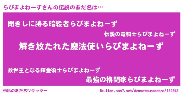 | ヘコむあだ名 | 『らぴお』『らぴまよねーず(苦笑)』 |