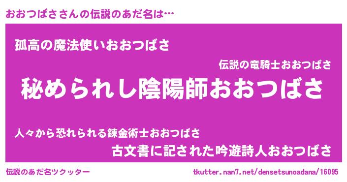 | 男性向けラノベタイトル風あだ名 | 『やはりおおつばさの青春ラブコメはまちがっている 』 |