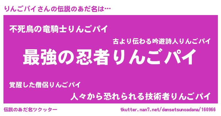 | 胡散臭い通販商品みたいなあだ名 | 『運命の人と巡り会える高級そうな壺…その名も「りんごパイ」』 |