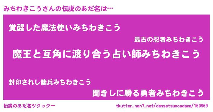 | ヒーロー風カッコイイあだ名 | 『愛の使者みちわきこう』『天弓騎士ミチ』 |