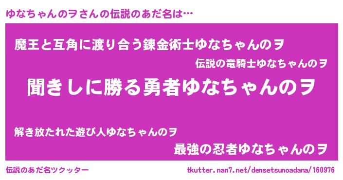 | 意味不明あだ名 | 『自称ゆなちゃんのヲ』 |