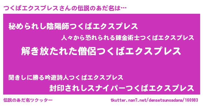 | 意味不明あだ名 | 『とにかく怪しいつくばエクスプレス』 |