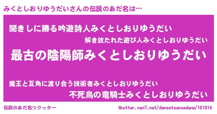 | ファンタジー風あだ名 | 『エターナルミクトシオリユウダイー』 |
