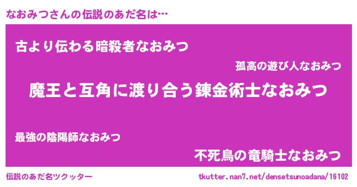 | 意味不明あだ名 | 『住所不定無職なおみつ(85歳)』 |
