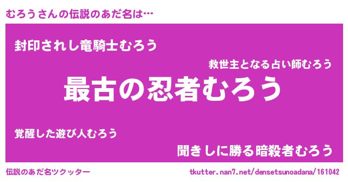 | ヒーロー風カッコイイあだ名 | 『ウルトラむろうマン』『スーパームロウ』 |
