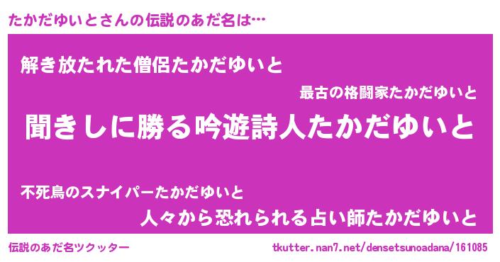 | 胡散臭い通販商品みたいなあだ名 | 『ガンによく効く高麗人参…その名も「たかだゆいと」』 |