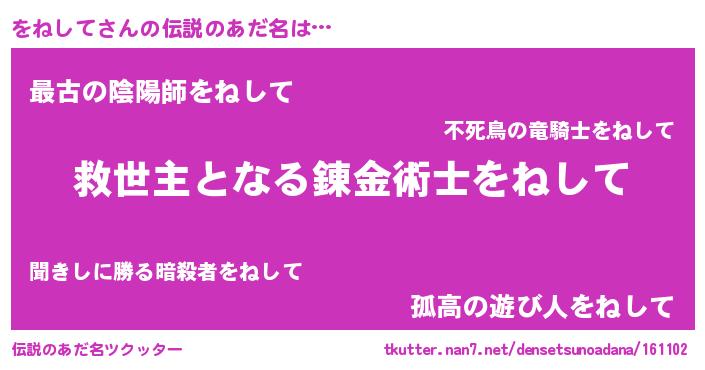 | ヒーロー風カッコイイあだ名 | 『慈愛の使者をねして』『銀牙騎士ヲネ』 |