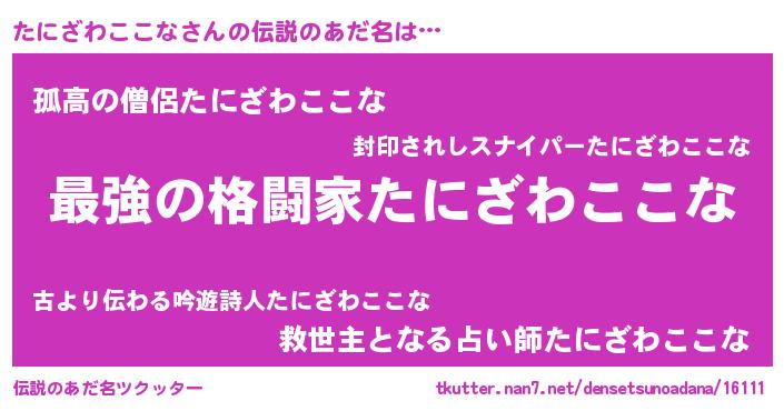 | ファンタジー風あだ名 | 『エターナルタニザワココナー』 |