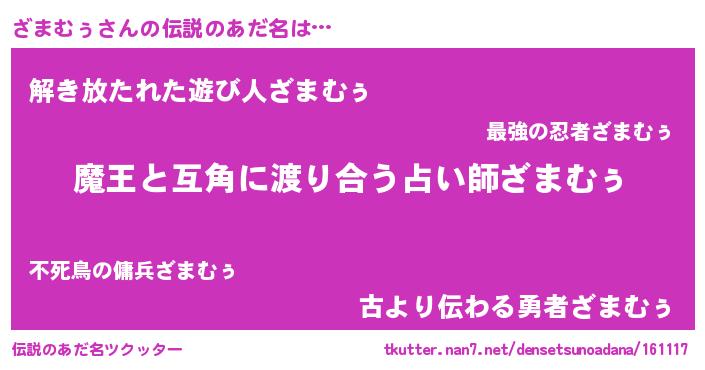| ヒーロー風カッコイイあだ名 | 『愛の使者ざまむぅ』『幻影騎士ザマ』 |