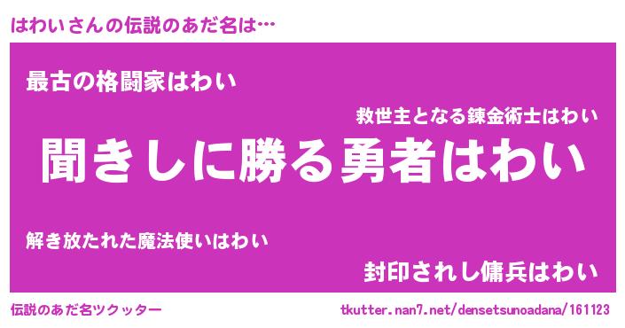 | 意味不明あだ名 | 『永久保存はわい』『はわいフォーエバー』 |