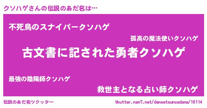 | ヒーロー風カッコイイあだ名 | 『ネオクソハゲ』『スーパークソハゲ』 |