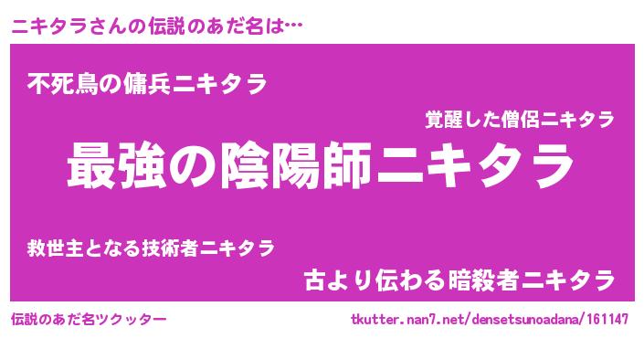 | 胡散臭い通販商品みたいなあだ名 | 『あなたにだけ特別に提供する世界で10本だけ現存している希少なブランデー…その名も「ニキタラ」』 |