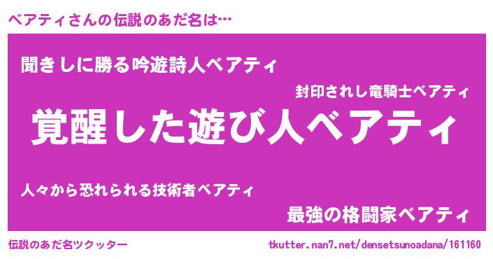 | ヘコむあだ名 | 『ベアっちょ』『ベアティ(小並感)』 |