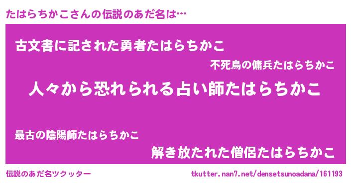 | 胡散臭い通販商品みたいなあだ名 | 『100人中100人が認めたイリジウム磁石…その名も「たはらちかこ」』 |