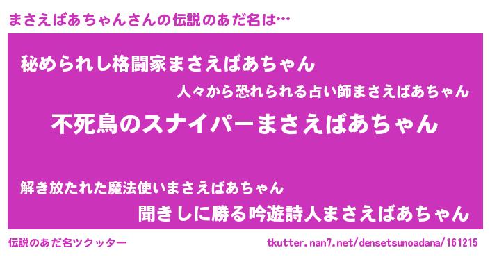 | ヒーロー風カッコイイあだ名 | 『最強戦士マサエバアチャン』 |