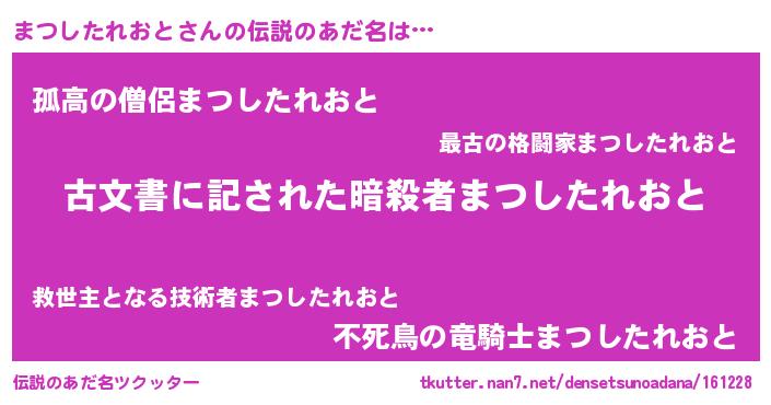 | ヘコむあだ名 | 『まつしたれおと(笑)』『まつっぺ』 |