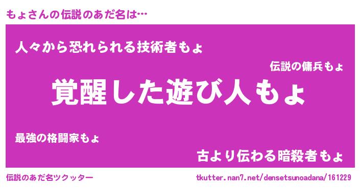 | ヒーロー風カッコイイあだ名 | 『幻影騎士モョ』『慈愛の使者もょ』 |