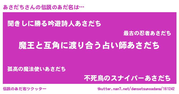 | ヒーロー風カッコイイあだ名 | 『友情の使者あさだち』『ネオアサダチ』 |
