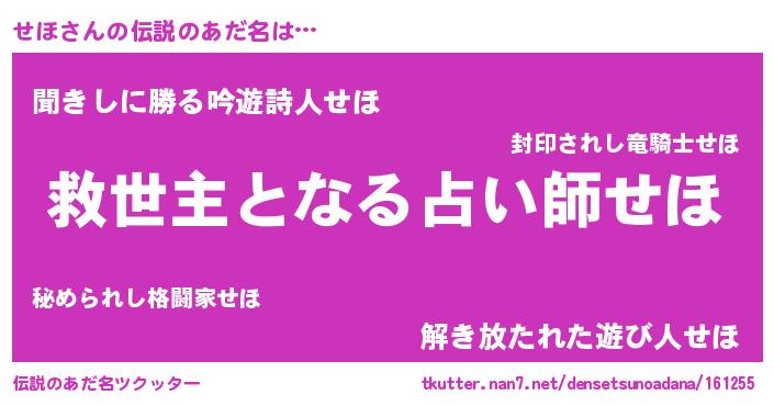 | ヒーロー風カッコイイあだ名 | 『天空の使者せほ』『ネオセホ』 |
