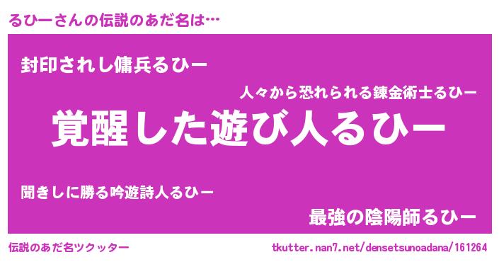 | ヘコむあだ名 | 『るひっちょ』『るひにゅー』 |