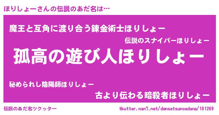 | ヒーロー風カッコイイあだ名 | 『黄金騎士ホリ』『愛の使者ほりしょー』 |