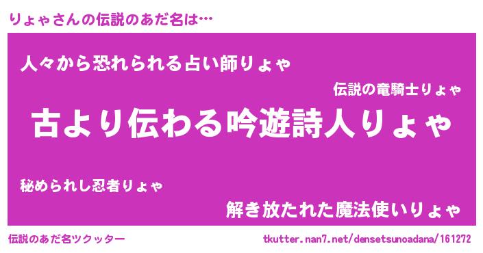 | 女子向けラノベタイトル風あだ名 | 『りょゃの契約王妃』『闇のりょゃ』 |