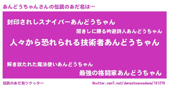 | 胡散臭い通販商品みたいなあだ名 | 『100人中100人が認めたマグネット磁石…その名も「あんどうちゃん」』 |