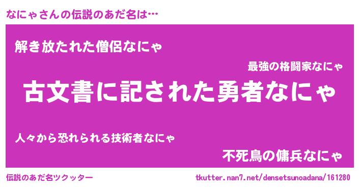 | ヒーロー風カッコイイあだ名 | 『ネオナニャ』『仮面ナニダー』 |