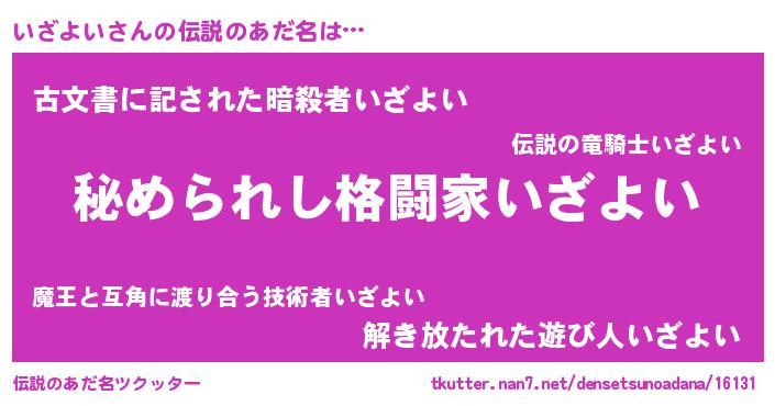| ヒーロー風カッコイイあだ名 | 『仮面イザダー』『ウルトラいざよいマン』 |